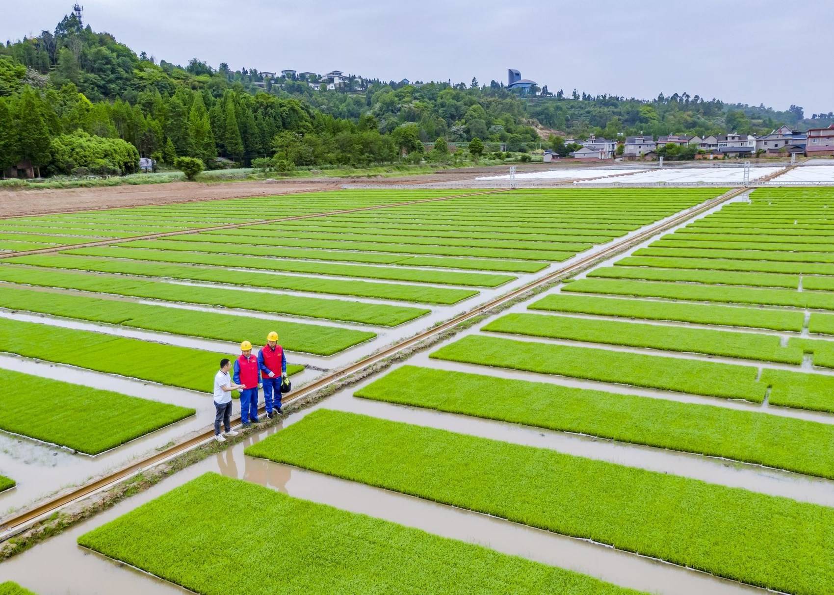 國網(wǎng)眉山供電公司工作人員到洪雅止戈農(nóng)事服務(wù)中心育秧中心,了解用電需求。(王鴻飛/攝)