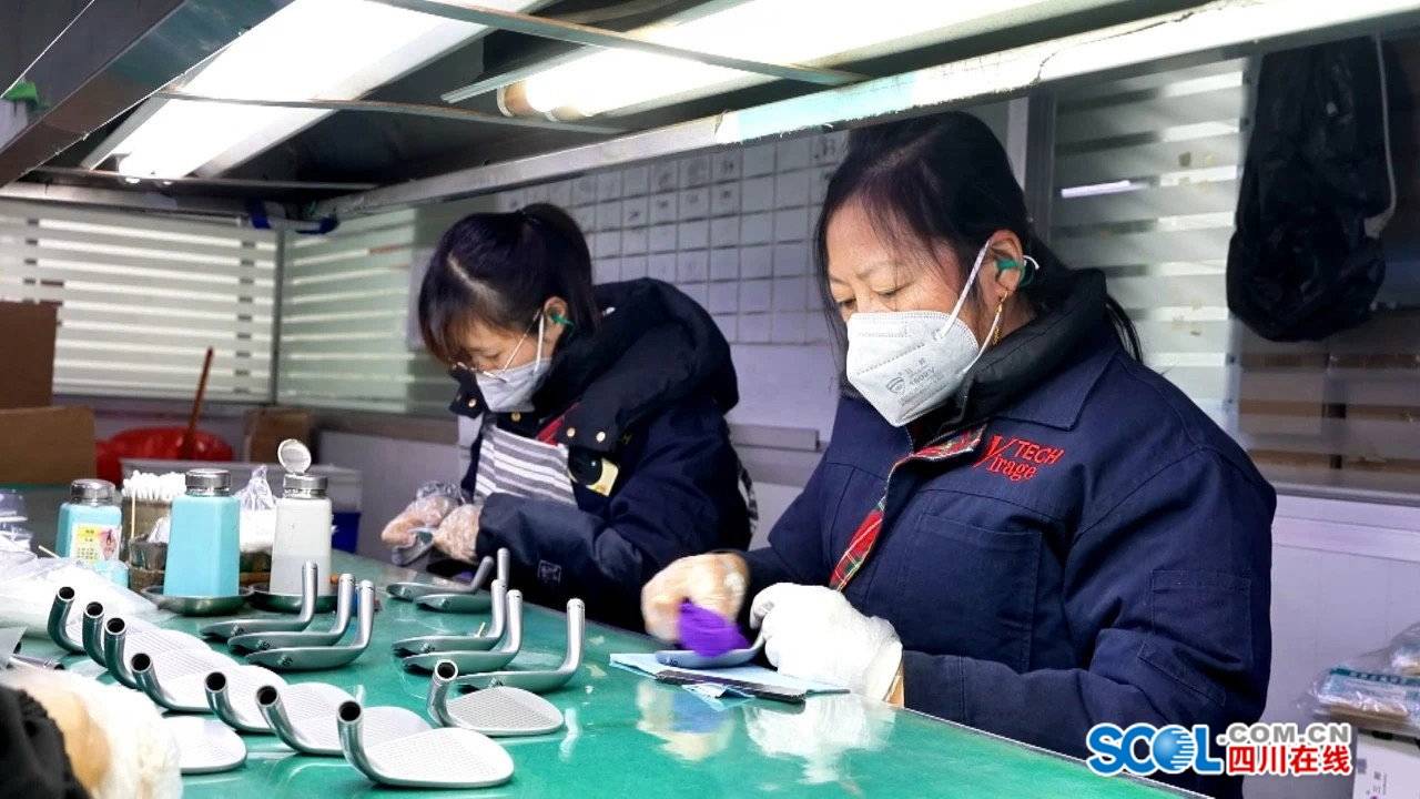 宇鈦體育工人正在擦拭高爾夫球頭